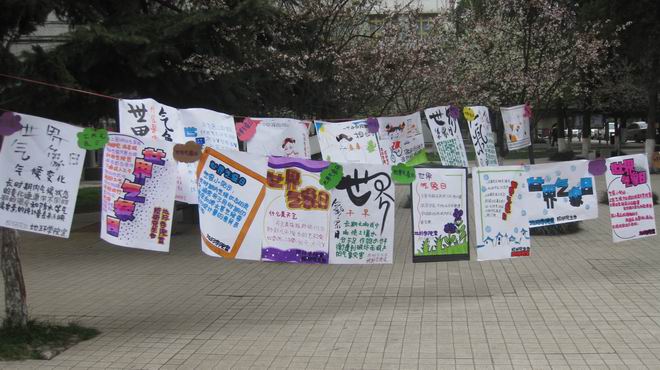 此次活动旨在借助第51个世界气象日来临之机,突出人与气候和谐相处、加强环境保护意识、营造良好生活习惯,体现地环学子专业特色的意义与目的。由校研究生会、地环学院团总支共同制作喷绘展板10余块、横幅数条,学院各团支部、班级分别手工制作海报共计30余张,制作环保卡片、有奖征集问卷100余份、联系贵州省气象局发放宣传资料千余册。此次展出作品和宣传活动得到了校团委、学院领导和参观者的一致好评。同时气象局领导和学院领导、相关学科专家也积极参与到有奖竞猜和签名活动中。