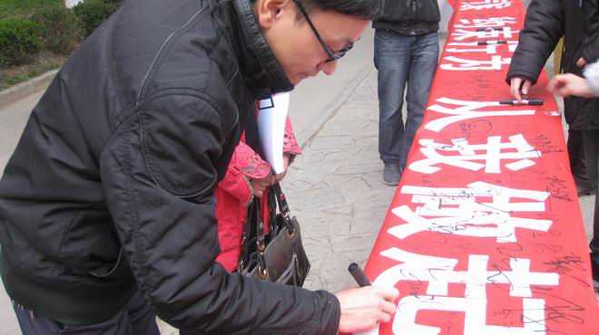 学科专家在倡议横幅上签名