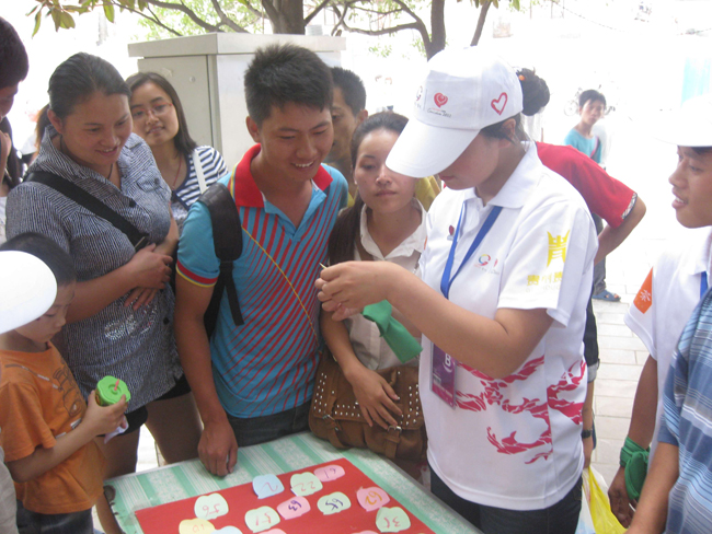 在大西门星力百货门口和沙河路万江小区前,35号站和40号站的志愿者热情服务,上千市民在祝福横幅和祝福墙上签下了自己的名字;在恒峰步行街,37号站和46号站联合开展了“中华团圆,佳节中秋”民族知识竞猜活动,800余名市民热情参与;在友谊大厦前,34号站开展了“民族赛事我知道”活动,通过设置运动会开幕以来赛况的有奖问题,增强市民对赛事的关注意识。