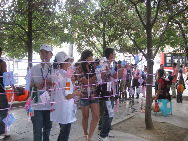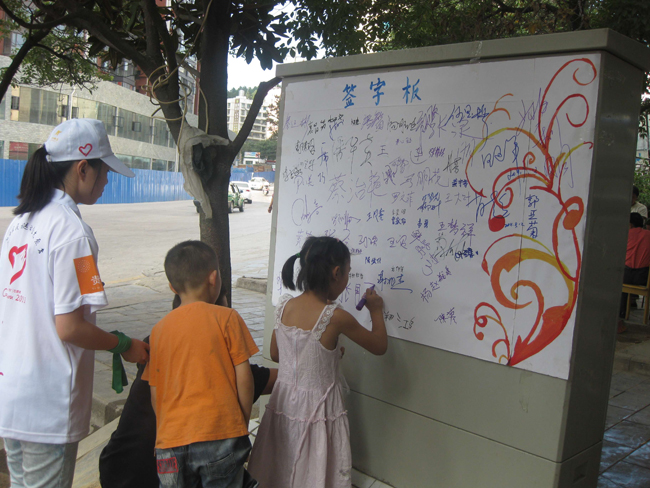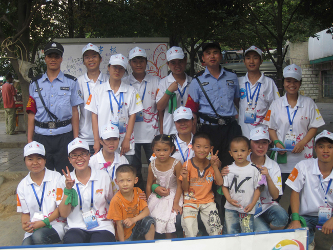 7号站的志愿者制作了“微笑画布”,天真可爱的小朋友们用稚嫩的沾满彩色颜料的小手绘出小太阳、笑脸等图案,为民族盛会加油;10号站在站点周围张灯结彩,开展了“中秋、盛会、你我同在”猜灯谜活动,营造了弄弄的节日气氛;43号站的志愿者则买了苹果,向站点的警察和协警人员一直以来的支持与配合表示感谢。