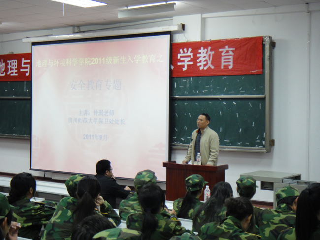 为增强同学们的安全意识,我们还邀请了校保卫处处长钟琪老师为同学们作了关于安全方面的讲座,钟老师从大学生安全健康的必要性入手,提出遇到危险状况时求救的途径、措施以及自救的方法。