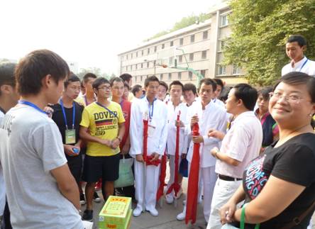 在与我院领队教师和学生演员的现场见面讲话中,陈辉林书记首先代表学院领导向我院参加节目排练的全体同学表示亲切慰问,他说,民运会开幕式即将拉开帷幕,希望同学们继续发扬不畏辛苦、勇于奉献的精神,服从指挥,保质保量,完成演出训练,力争在开幕式表演中有出色表现。作为一名大学生,能参与第九届全国少数民族传统体育运动会,是一种荣誉同时也意味着一种责任。他希望同学们珍惜这一生都难得的机会,增强责任感和荣誉感,通过参与这次盛会来历练自己,为贵州、为师大、为学院争光添彩。最后,他把特意为学生购买的消暑饮料发放到同学们的手中。