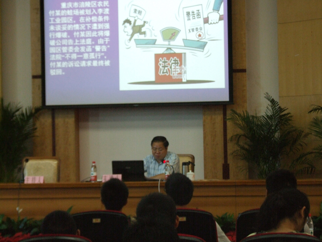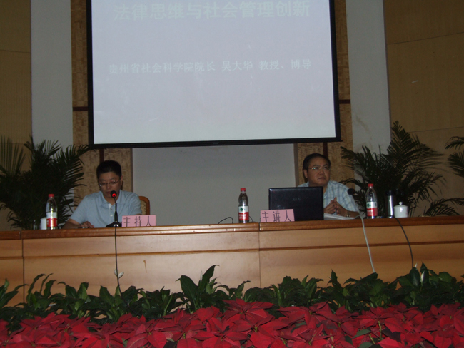 应法学院邀请,贵州省社会科学院院长吴大华教授于2011年9月7日下午在田家炳书院三楼多功能厅为我校师生作了题为“社会创新管理与法律思维”的学术讲座。法学院副院长李运才、副院长文永辉和法学院近200余名师生聆听了吴大华教授的精彩讲座。讲座由李运才副院长主持。