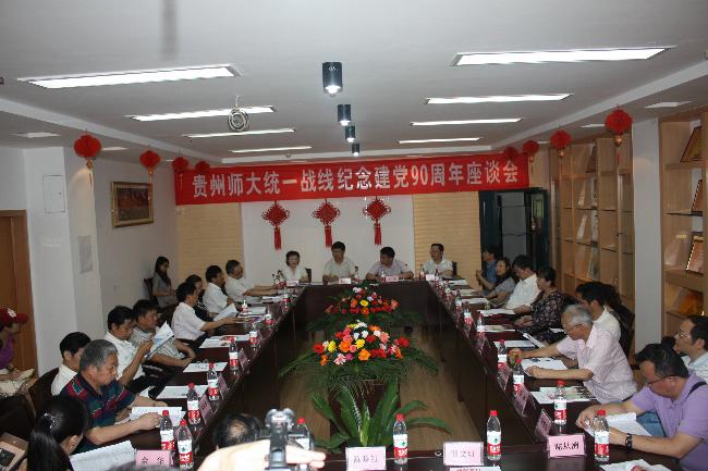 6月23日,贵州师范大学举行统一战线纪念建党90周年座谈会。各民主党派和无党派知识分子代表、归侨侨眷及港澳台胞属代表、留学归国人员代表等相聚一堂,畅谈中国共产党建党90年来所取得的光辉业绩。校党委副书记褚光荣、校统战部部长全学军、校组织部部长吴涛、校宣传部部长黄保红等参加座谈。座谈会由校统战部部长全学军主持。