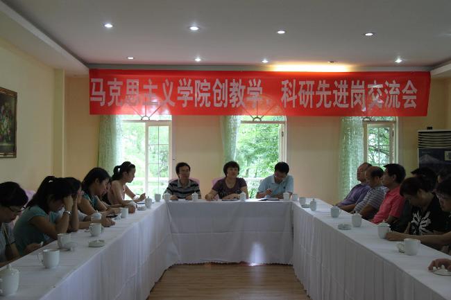 2011年7月1日上午,马克思主义学院“纪念建党九十周年特别活动”和“创教学、科研先进岗交流会”在龙洞堡碧翠湖活动中心会议室举行,全院教职员工37人参加。会议由学院党总支书记杨文武主持。