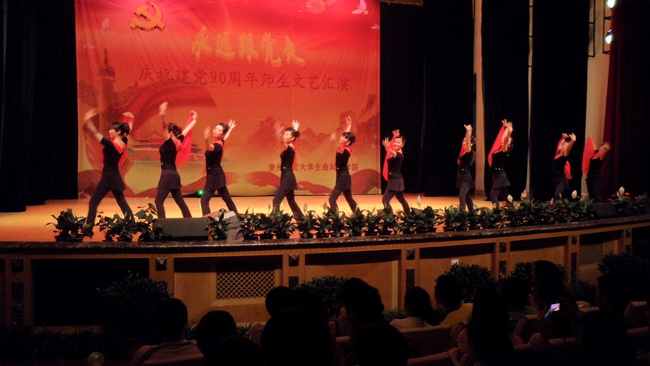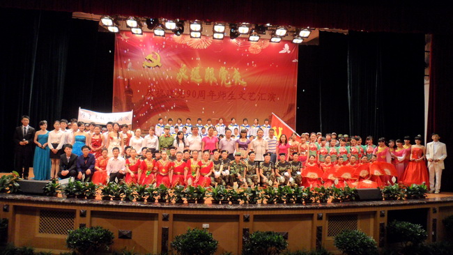 中国共产党的历史,是一首用生命和鲜血谱成的交响。中国共产党的今天,是一部由和谐与欢乐组成的乐章。中国共产党用金色的镰刀把希望收割,用金色的锤子把前程开拓。自1921年7月建党至今,中国共产党已走过90载的光辉历程。为隆重庆祝党的90岁生日,2011年6月9日晚,生命科学学院在学校大礼堂举办了一场“‘永远跟党走’庆祝建党90周年”的师生文艺汇演,以此作为生日礼物献给伟大的党。