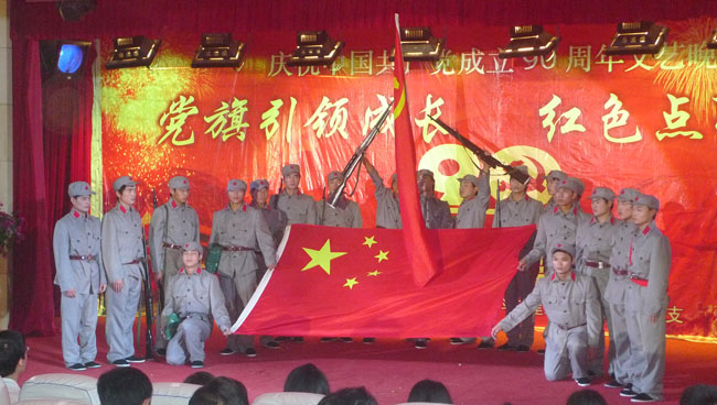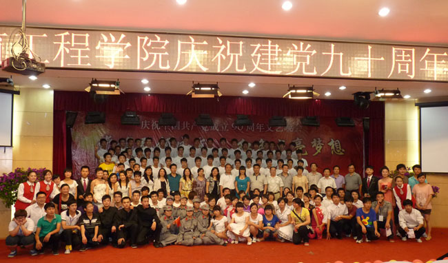 为了纪念中国共产党建党90周年,重温党的光辉历程,歌颂中国共产党的丰功伟绩,颂扬共产党好、社会主义好、伟大祖国好、各族人民好、改革开放好的主旋律,展现我院党建工作的新面貌,材料与建筑工程学院于2011年6月15日晚在白云校区求是讲堂举办了以“党旗引领成长 红色点亮梦想”为主题的红色晚会。