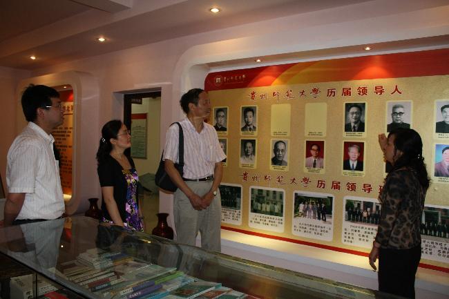 邵培基教授(左三)在校档案馆参观