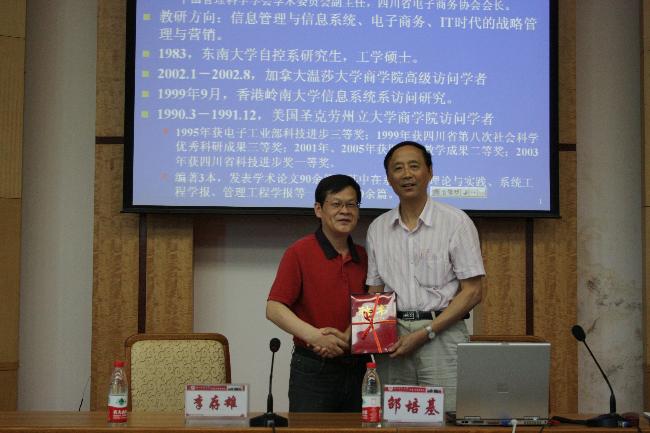6月20日,我校特聘教授、电子科技大学博士生导师、中国管理科学学会学术委员会副主任、国际信息系统协会中国分会(CNAIS)常务委员、四川省电子商务协会会长、电子科技大学信息管理与电子商务研究所所长邵培基教授,莅临我校经济与管理学院指导工作。