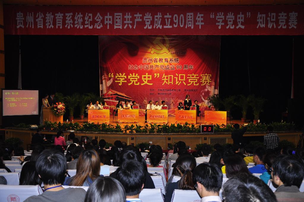 “学党史”知识竞赛从6月2日开始,以党史、党情、党建为主要内容,围绕党的理论、路线、方针政策等为主线,将党史教育与国情、省情相结合,具有基础性强、知识点多、极具挑战性等特点。竞赛设个人必答题、抢答题和风险题三个环节,分复赛、半决赛和决赛三个阶段。来自贵州省9个地州市各教育局、各高校27支代表队参加了竞赛。竞赛中,各代表队团结协作,反应机敏,充分体现出各党员干部、学生党员及同学们对党史知识的熟练掌握和奋勇争先、锐意进取的精神面貌。
