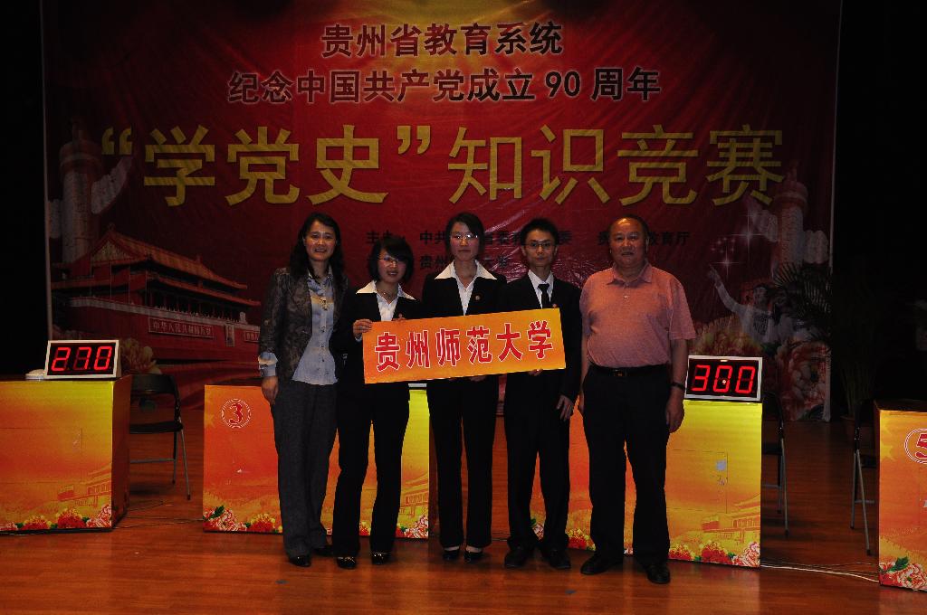 师大校园,彩旗飘扬,高悬气球挂着大幅标语,气氛庄严热烈,大礼堂主席台上,鲜花吐艳,为竞赛现场增添了一道靓丽风景。6月3日下午,由中共贵州省委教育工委、贵州省教育厅主办,我校承办的贵州省教育系统纪念中国共产党成立90周年“学党史”知识竞赛决赛在学校大礼堂举行。校党委书记蒲芝权、校党委副书记褚光荣到场观看。校党委宣传部、校团委负责人、相关职能部门负责人及学校部分师生到场观看。