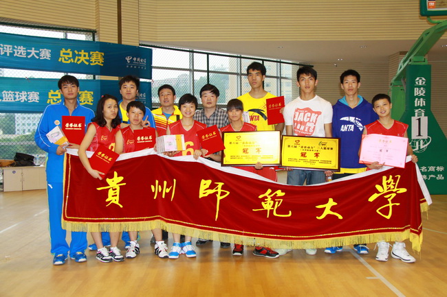5月24日,由贵州省文明办、贵州省教育厅、第九届全国少数民族传统体育运动会筹委会、共青团贵州省委、贵州省学生联合会、贵州省志愿者协会、中国电信贵州分公司主办,贵州省学生联合会秘书处、贵州省志愿者行动指导中心、贵州师范大学承办的以“我的青春、我的时代、我爱运动、我爱生活;喜迎第九届全国少数民族传统体育运动会”为主题的“青春动力”第六届三人篮球赛暨第四届篮球宝贝大赛总决赛及颁奖仪式在我校体育活动中心举行。在体育学院陆振国、黄江林和李政三位老师的指导下,我校代表队努力拼搏、表现优异,最终获得三人制篮球本科男子冠军、本科女子冠军及篮球宝贝比赛第一名,取得大满贯。