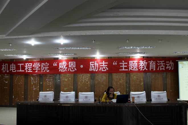 5月12日下午,机电工程学院在白云校区综合楼211会议室开展“感恩•励志”主题教育活动,此次主题讲座由学院辅导员李芳主讲,学院2010级全体学生参加了此次活动。