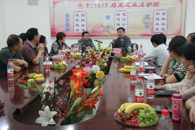 马克思主义学院党总支书记杨文武教授、分管科研的副院长汪勇博士、分管教学的副院长杨近平教授等分别就大学生思想政治理论课实践教学、青年教师如何做好科研、西部落后省区如何在国家级精品课程建设上有所突破等方面与宋连胜教授进行了交流和讨论。