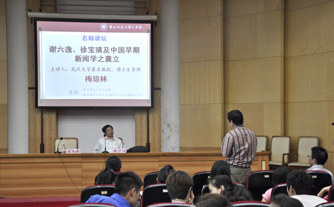 受我校文学院、文学 教育与文化传播研究中心的邀请,5月18日,武汉大学新闻与传播学院著名教授、博士生导师梅琼林在我校田家炳教育书院三楼多功能厅为文学院师生作题为“谢六逸、徐宝璜及中国早期新闻学之奠立”的学术讲座。讲座由文学院院长易闻晓主持。学院相关专业师生近300人到场聆听讲座。