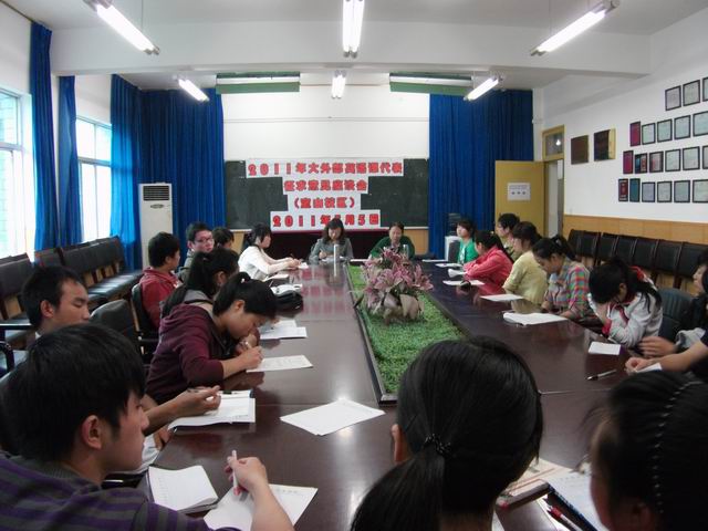 大学外语教学部于于2011年5月5日下午4:30在大外部会议室、2011年5月11日下午4:30在白云校区综合楼608教室分别召开了听取09、10级英语科代表意见座谈会。