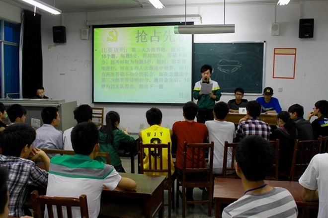 活动在白云校区综合楼504教室举行,共六个代表队参赛。竞赛以主持人现场提问,参赛队员口头答题,结合多媒体放映的形式展开。竞赛分为三关:步步为营、抢占先机、起死回生。最后累计分数最高的代表队成为优胜队,将有机会代表学院继续参加学校的比赛。比赛期间,选手们积极参与,踊跃答题。精彩的回答赢得了场下观众一次次的掌声,也赢得了评委的好评。最终,2009级电信班以105分的好成绩脱颖而出,荣获最佳团队奖。另外,吕锋、涂小春、张晓东三名同学因其出色的表现,荣获优秀个人奖。