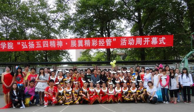 为积极响应校团委“一周一主题,一院一特色”活动的号召,提高同学们对我院专业的全面理解,彰显我院专业魅力,5月4日下午,经济与管理学院在白云校区三教前篮球场举行了“弘扬五四精神•展翼精彩经管”活动周开幕式。校团委副书记陈贵平,院团总支负责人潘瑜,2010级学生辅导员李祥出席开幕式,白云校区各学院学生代表也受邀参加了活动。