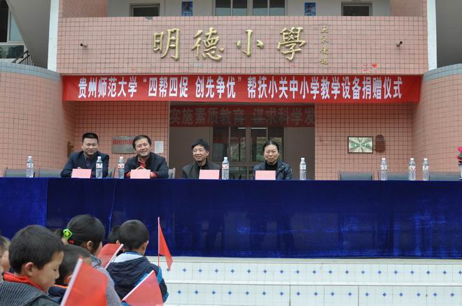 为了将“忠实践行宗旨,勤政廉政为民”教育暨“创先争优”活动引向深入,充分体现党以重教为先的执政理念,弘扬尊师重教之风,让学生在感恩中成长。4月9日生命科学学院党委书记王亚筑、院长乙引、国资处彭兴国老师一行驱车6个多小时,来到了绥阳县小关乡,开展“四帮四促”、“创先争优”教学物资捐赠仪式活动,将电脑等教学设备共计40余套,价值10万多元的教学物资捐赠给了小关乡明德小学。小关乡地处绥阳县的大山深处,道路崎岖,贫穷落后,发展滞后。这些年在党和国家的帮扶下,孩子们都能接受义务教育,但是很难接触到现代教学设备,此次捐赠改善了小关乡明德小学的现代教学条件,使贫困山区小学生能使用上现代化教学设备,与信息高速接轨,感受精彩的外面世界。参加捐赠仪式的还有小关乡党支部书记王家木书记,小关乡李乡长以及小关乡明德小学全体师生。
