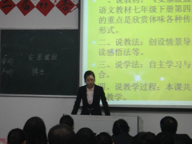 本次大赛以两人一组参加,一人进行讲课和说课,另一人则是评课,共同完成比赛。评委老师根据具体的评分细则进行打分。历时三天的精彩角逐,选手们都满怀激情的在讲台上分享着他们的知识,一次一次的精彩讲课,一次一次的精彩点评,都将比赛推向了一个又一个的高潮。在大赛最后,各位评委老师还对大赛进行了点评,既充分的肯定了参赛同学的能力也指出了不足,并鼓励每个选手在以后的学习中要精益求精,做到更好。在师生和谐的氛围中我们一同期待下一届的比赛会更加精彩。
