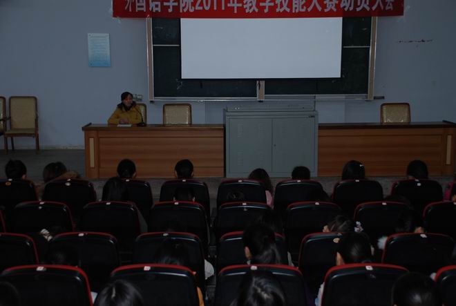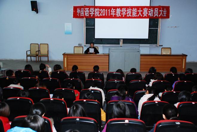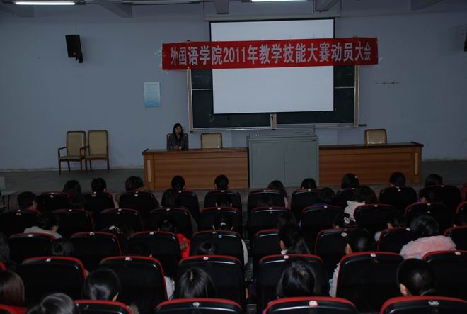 为鼓励广大学生积极参加贵州师范大学第二届教学技能大赛,外国语学院于3月23日下午在田家炳教育书院5楼阶梯教室组织召开2008、2009级全体学生会议,对学院参加学校第二届教学技能大赛进行动员部署,学院副院长郑志进出席会议并作动员讲话,党委副书记吕涛主持会议。