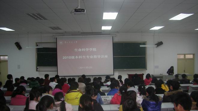 2011年3月25日下午,白云校区求是学院艺体楼501教室,生命科学学院举办了2010级专业分流指导讲座。讲座分别由我院主管本科生教学工作的翁庆北院长和分管学生工作的李健书记主讲。