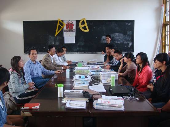 榕江县共有我校9个学院的顶岗实习学生112名,分布在20所中小学。当天,在榕江县教育局相关领导的协助下,巡视队伍分为四组,由党委书记刘应猛、院长陈卓、副院长秦好丽、党委副书记王光彦分别带队至20所学校,与顶岗实习学校领导、指导教师、顶岗学生进行座谈交流。校方普遍反映我们的学生角色转变到位,态度认真,工作积极,与相应学科指导教师沟通较好,能够完成顶岗教师的教学任务,一些优秀学生还能在教学中引入较新的教学方法和理念,或者承担教务主任、班主任等较为繁杂的工作。同时也了解到,虽然实习环境比较艰苦,各顶岗实习学校领导仍尽量为实习学生做了精心的生活安排,解决后顾之忧,让学生们充分感受到了当地对他们的关心爱护,从而更加热情的投入到工作中。学院领导分别对所到学校表达了诚挚的谢意,并且对顶岗学生提出了殷切希望:发扬吃苦耐劳、拼搏进取的精神,增强沟通与交流能力,认真学习老教师的教学经验,充分利用这一难得的机会提升自己,做到学校与学生双方共赢。