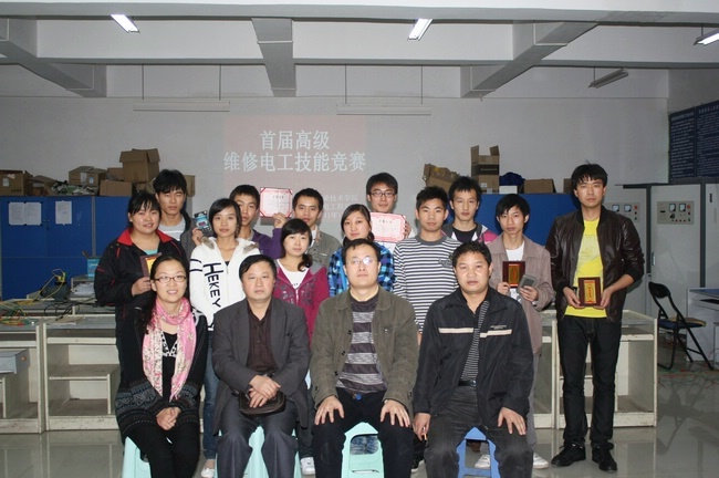 2011年11月4日14时30分,由职业技术学院机电工程系主办的首届高级维修电工技能竞赛在实训大楼四楼电气实训室举行,12名同学参加了比赛。学院副院张光明长主持并致辞,副院长颜广、副书记明富亲临比赛现场观看并指导比赛。张寒蕾、高飞、周仕友等三位老师担任本次大赛评委。