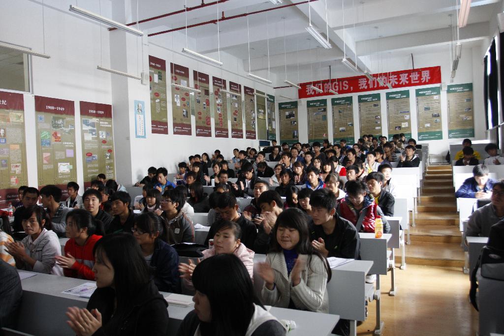 上午,北京ERSI公司资深技术人员白旭阳老师和贵州省林业调查规划院3S中心主任岑刚老师在综合楼606教室分别作GIS应用主题报告会,学院院长安裕伦出席本场报告会。白旭阳老师以“GIS趣谈”为主题,重点讲授了当代GIS的发展概况及未来发展趋势、GIS应用领域的扩展、GIS知识的相关学习技巧等内容。岑刚老师则以“GIS在林业部门中的应用”为题,向大家讲解了GIS在林业管理、林业规划、林业制图等方面的实际运用问题。两位老师资深的专业知识、风趣幽默的讲解赢得了在场观众的阵阵掌声。学院GIS学科组全体老师,学院2008级、2009级、2010级GIS专业全体同学到场聆听了本场报告会。