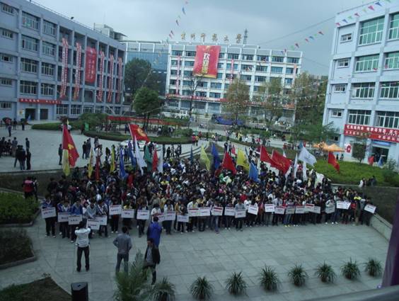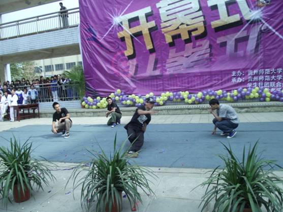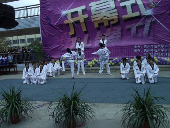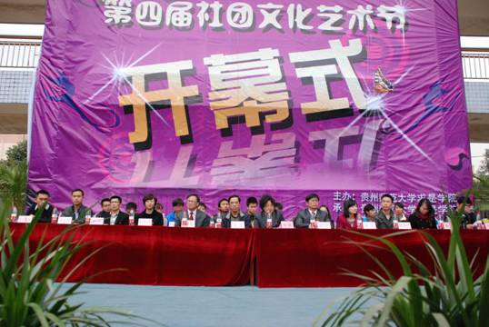 11月18日,我校白云校区求是广场彩球飞扬、人声鼎沸,伴随着激昂的音乐,由求是学院主办,院团委、学生社团联合会及院各学生社团共同承办的“百家争鸣迎校庆·多彩社团齐争辉”第四届社团文化艺术节隆重开幕。求是学院党委书记战勇、院长张静、党委副书记潘国昌、吴大军等出席开幕式,来自贵州大学、贵州师范学院、贵州民族学院等高校的学生社联会代表出席并观看演出。