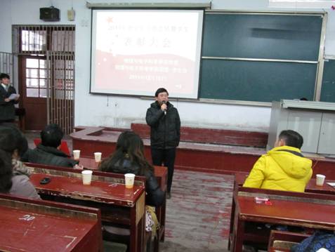 大会在庄严的国歌声中拉开帷幕。院团委书记秦欣就本年度团学工作和学生获奖情况做了总结,她在讲话中充分肯定了学院学生干部一年来取得的各项成绩,并对全体学生提出了新的要求和期望:一是希望广大学生,特别是学生干部要加强学习,做好复习考试准备;二是考试中要诚信考试,切勿违纪甚至作弊,在班级上和同学中起到诚信考试的带头作用。