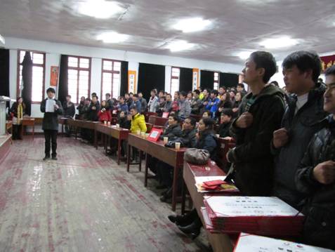 陈世国院长作大会总结。他指出,作为一名大学生只有不断的挑战自我,突破自我,敢于实践,勇于探索才能实现自己真正的价值;现在期末考试即将到来,希望同学们能够做到诚信考试、诚信做人,并祝愿大家过个美好的春节。