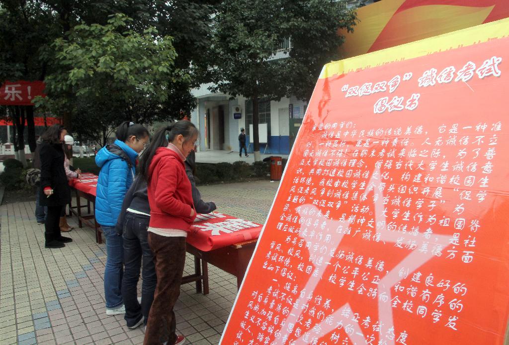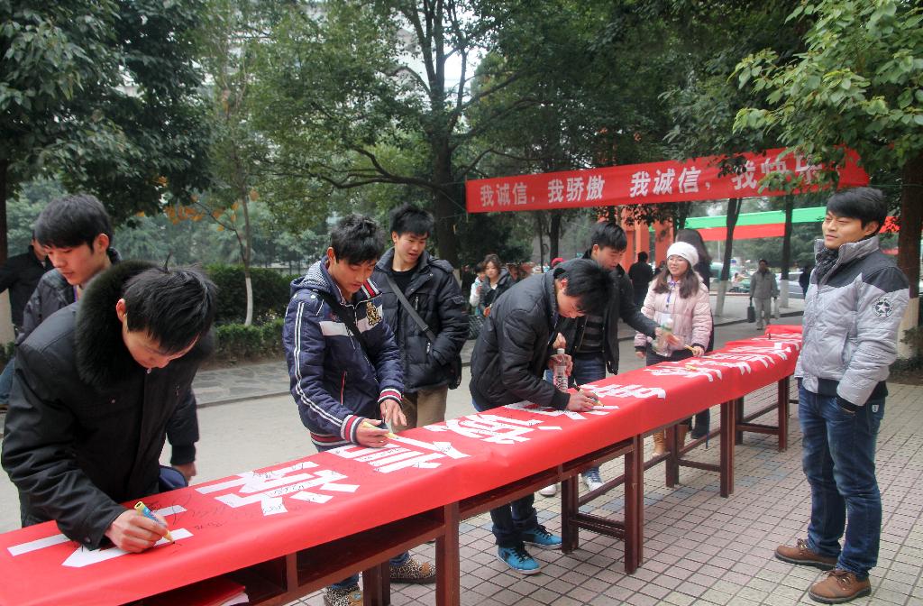 12月26日,校团委、学生会在文科楼前组织开展了“促学风 促考风 争创诚信集体 争当诚信学子”活动。