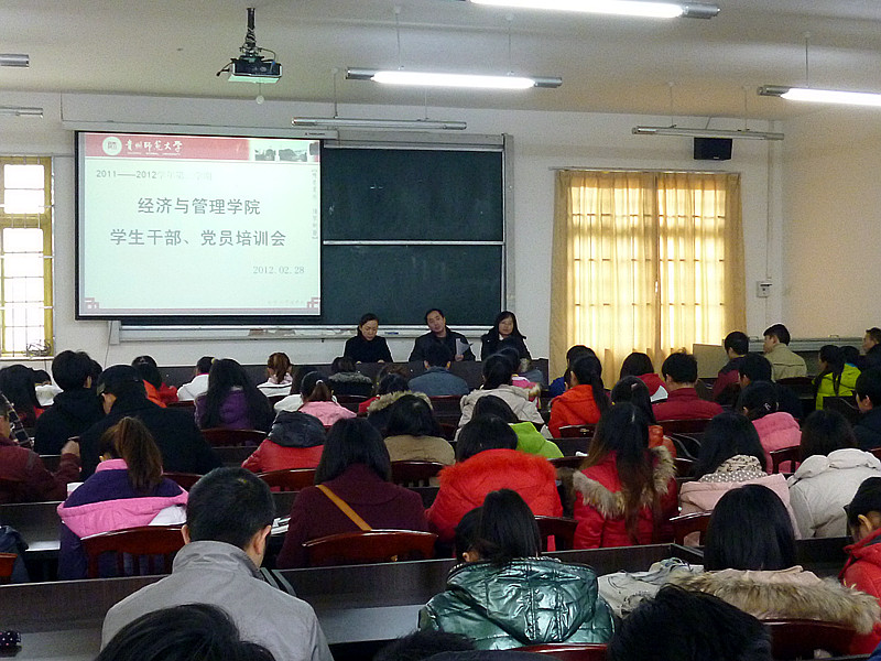 2月28日、29日,我校经济与管理学院在宝山、白云两校区分别举行了全体学生干部、学生党员培训会。院党委副书记项君、组织员赵本喜、分团委书记高雅杰及各年级辅导员老师出席,两校区近300名学生干部、学生党员参加了培训。