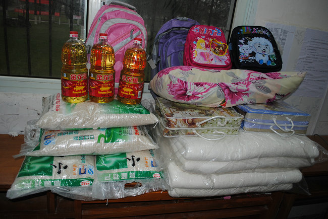 志愿者为摆茅村困难户黄光明、李世华、李世军三家带去了棉被5床、大米4袋和花生油3桶,还为孩子们带去了新学期礼物书包4个、本子20个和文具盒10个。帮扶活动为困难户送去了温暖,更是送去了一片爱心,困难户收到志愿者们送去的礼物表示十分的感激,当地村委也对志愿者们的优良作风表示充分的赞扬。