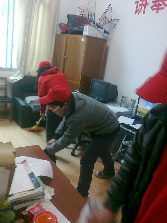 3月5日上午,学院青年志愿者带上扫帚、拖把等清洁工具在综合楼大厅集合,随后深入学院各办公室打扫卫生,并对学院的所有宣传橱窗进行了清洁。