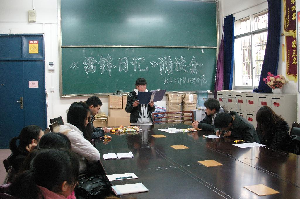 3月9日下午,我校数学与计算机科学学院开展学习雷锋活动月系列活动之《雷锋日记》诵读活动。学院团委、学生会、青分会全体学生干部参加了诵读活动。