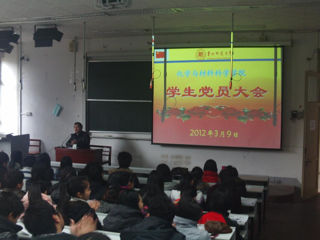 3月9日中午,化学与材料科学学院在宝山校区第九教学楼202教室,组织本院全体学生党员共180余人召开学生党员大会。学院党委副书记王光彦、09级学生辅导员罗孜和09级研究生辅导员黄凌云出席会议。会议由学院党委组织员孟忠常主持。