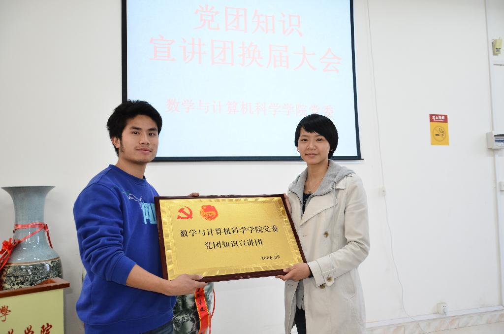 宣讲团前任团长潘鸿同学总结了第五届宣讲团的工作。新一届宣讲团代表陆安艳同学介绍了宣讲团今后一段时期的发展规划。