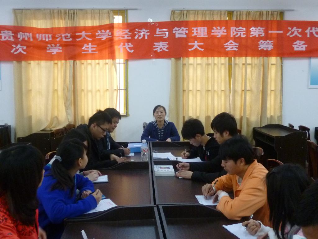 会议就撰写团代会工作报告、学代会工作报告等相关事宜进行了相关部署,并根据本次两代会代表总数、构成的指导性比例以及学院两校区年级分布的实际情况,正式讨论确定了“两代会”的代表名额在各选区、各年级的分配比例,再次规范、具体了代表选举的方式方法和操作流程。讨论了向团支部、各班级下发的《关于召开共青团贵州师范大学经济与管理学院委员会第一次代表大会、贵州师范大学经济与管理学院第一次学生代表大会的通知》文件。