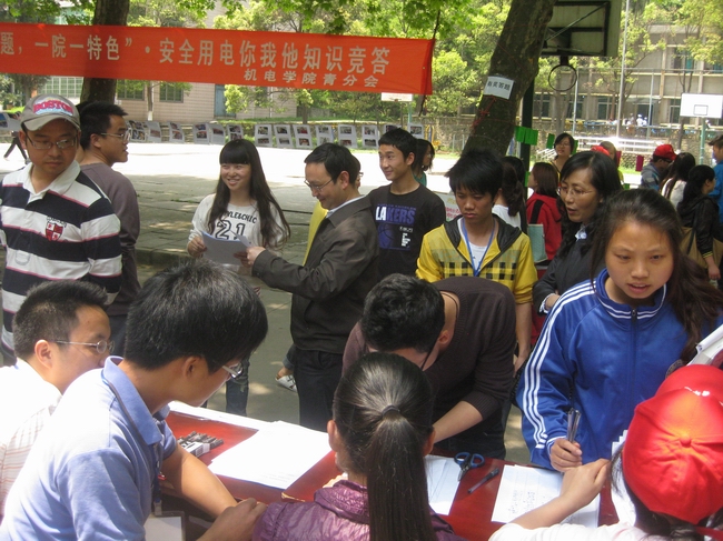 学院通过开展机电图片展、安全用电知识有奖竞答、义务家电维修、单片机应用设计大赛作品展等活动向师生展示了机电学院的特色和风采。在工作人员的精心组织下,所有活动都在有条不紊地进行。活动中,工作人员向过往的行人发放关于“安全用电”的宣传单,同学们认真阅读学习,对于预防火灾的发生起到了积极的作用。在安全用电知识有奖竞答的现场,同学们积极参与竞答,寓学于乐,并获得了精美的小奖品。
