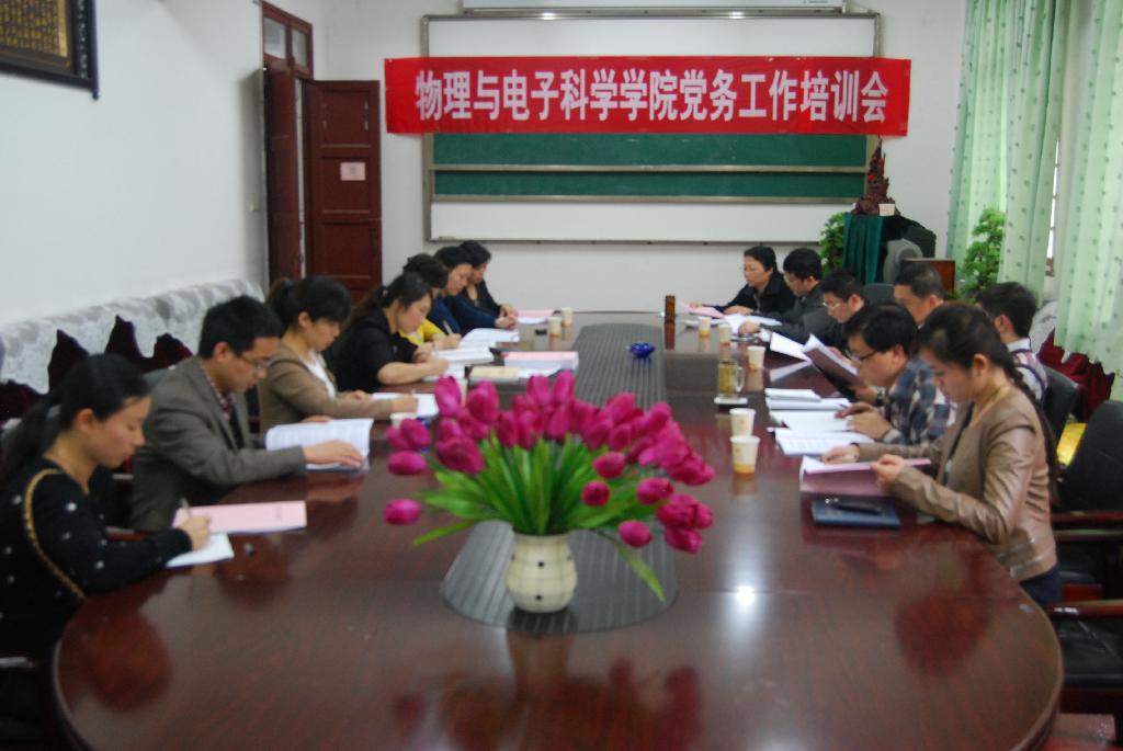 为充分发挥党支部的战斗堡垒作用和支部委员的骨干带头作用,提升党支部工作的效率与水平,推进基层党组织建设,以全新的姿态喜迎十八大的召开,我校物理与电子科学学院党委于5月4日下午举办了党务工作培训会。学院党委委员及新任教工党支部委员参加培训。培训会由院党委副书记李应发主持。