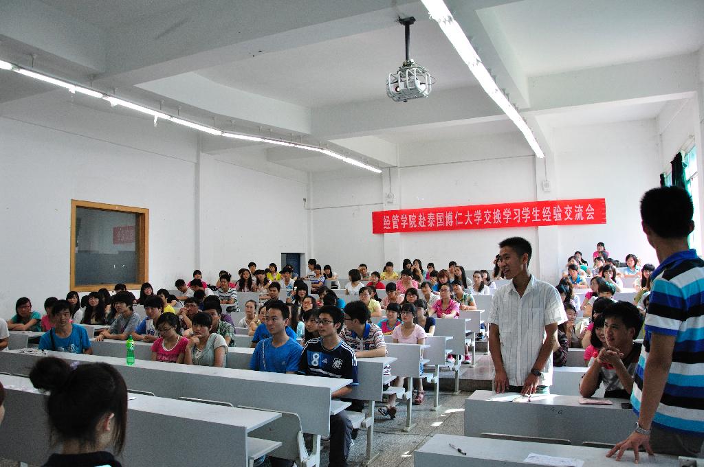 5月11日下午,经济与管理学院在白云校区开展“学院赴泰国博仁大学学生学习交流会”。学院09级辅导员江剑虹、10级辅导员李祥、11级辅导员张晶晶及10级、11级学生代表参加了此次交流会。学院赴泰国博仁大学交换生代表李鸿云、杨兰兰等七名同学带来了精彩的演讲。