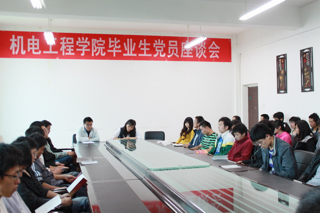 5月23日下午,机械与电气工程学院在综合楼509会议室举行了2012届毕业生党员座谈会。学院党委副书记黄平惠出席会议并发表讲话。座谈会由院学生党支部书记张文云主持。2012届全体毕业生党员和学生党建工作中心部分学生代表参加了座谈会。