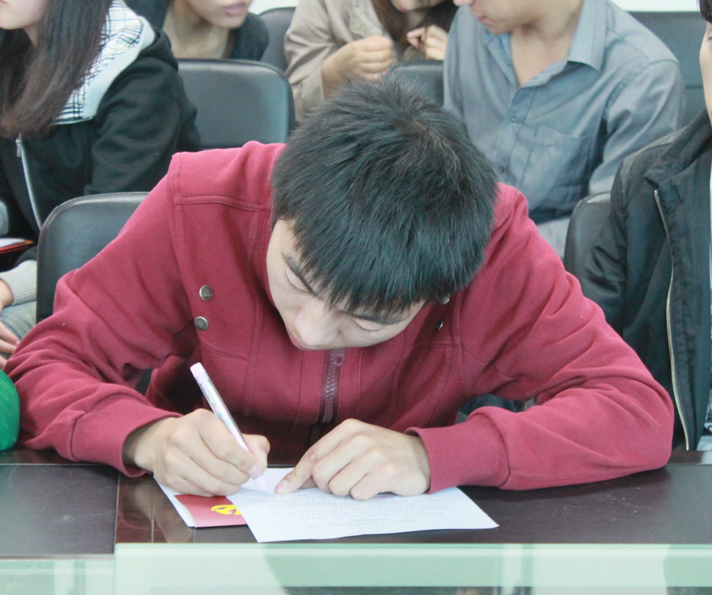 会后,全体毕业生党员签订了《贵州师范大学2012届毕业生党员文明离校承诺书》并领取了《贵州师范大学毕业生党员转移组织关系服务卡》。