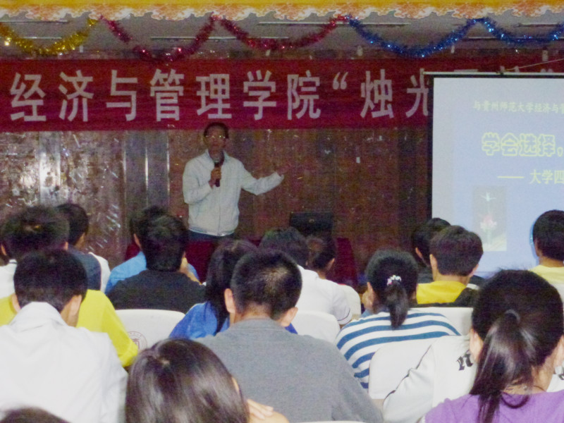 为了引导大学生适应大学学习生活,及时对自己的职业生涯进行规划,勉励学生成长成才,5月29日晚,经济与管理学院邀请了我校生命科学学院罗泰昌教授在白云校区综合楼211室作了题为“学会选择,懂得放弃”的讲座。讲座由经管学院院团委副书记张晶晶主持。