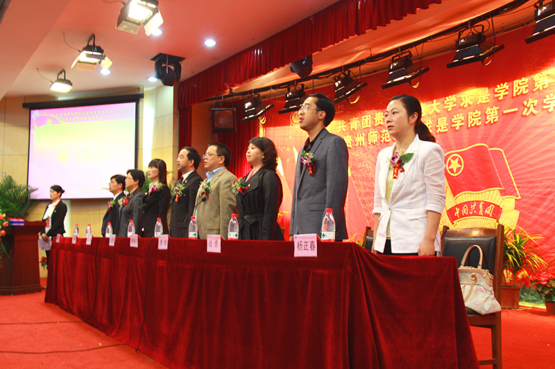 学校党委副书记、纪委书记邹克扬,校党委宣传部部长黄保红,学生工作部部长彭洁,团委书记李娅,共青团白云区委书记杨正春,求是学院党委书记战勇、院长张静、党委副书记潘国昌出席会议。来自省内8所独立院校的代表和学院各系师生代表400余人参加了大会。共青团白云区委、省内8所独立学院团委、18所兄弟学院团委等纷纷发来贺电。