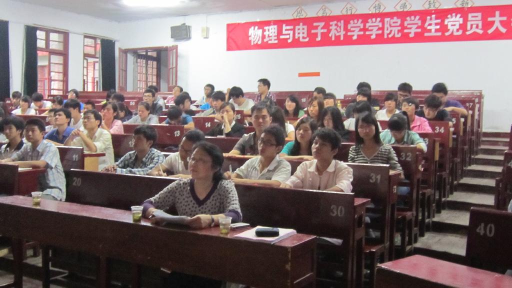 为进一步落实《中国共产党普通高等学校基层组织工作条例》,努力提高党员的综合素质,充分发挥学生党员、党支部在党员发展、创先争优和班风、学风建设等多项工作中的积极作用,切实加强党员教育、学生党支部建设,6月13日晚上,物理与电子科学学院党委在物理楼731教室举办学生党员教育培训大会。出席本次培训会的有校党委组织部杨淑珍老师、学院党委领导、学生党支部书记及全体学生党员共计120余人。会议由院党委副书记李应发主持。
