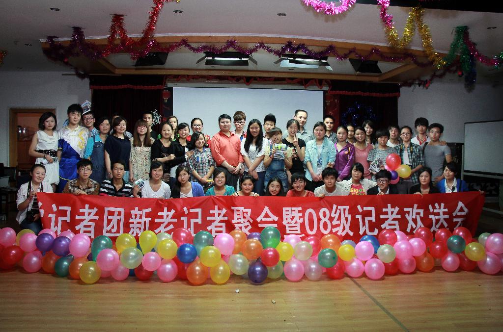 “因为我们是一家人,相亲相爱的一家人。有福就该同享,有难必然同当,用相知相守换地久天长······”随着我校记者团团歌《相亲相爱一家人》的播放,6月10日,贵州师范大学记者团新老记者聚会暨2008级记者团欢送会在离退休职工活动中心拉开了帷幕。记者团指导老师居福荣、张皓出席了欢送会,2008级、2009级、2010级、2011级百余名学生记者前来观看并参与欢送会演出。欢送会由学生记者孟飞、尚亚丽主持。