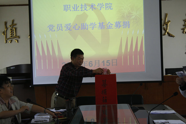 会后,全体党员举行了党员爱心助学基金的募捐仪式,大家纷纷为我校贫困学子献出爱心,共计捐得助学款近2000元人民币。